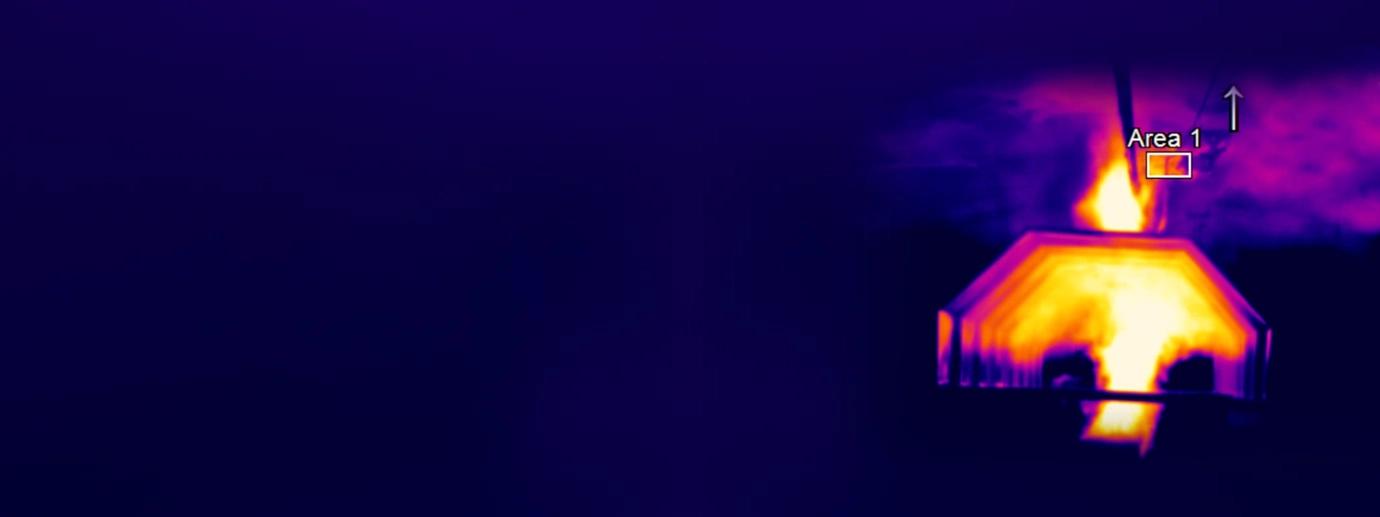 The PI 640i, which was still intact and survived the fire, precisely recorded all the temperatures that occurred in the visible area throughout the entire time (including during the fire extinguishing process). These were between room temperature at the beginning and close to 900°C shortly before the fire was extinguished.