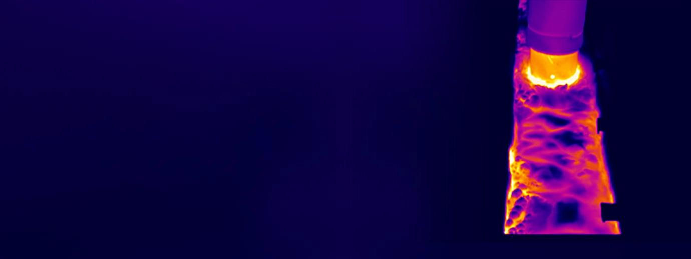 The IR thermal imaging camera from Optris monitors the temperature distribution on the surface of the molten metal in the mold. This monitoring provides real-time data on the temperature profiles and helps to identify critical areas that require special attention. In particular, the camera can determine whether the temperature is too high or too low in certain areas, which could indicate uneven flux distribution or other problems.
