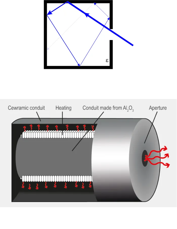Since it is very difficult to develop a coating with minimal reflectivity over a wide wavelength range that is also temperature-resistant and cost-efficient, it has not been possible to produce a black body radiator simply by applying a specific coating. The best possible technical realization of a black body is a homogeneously tempered hollow body with a small opening compared to the inner diameter. This setup effectively absorbs any radiation entering the hole through internal multiple scattering, fulfilling conditions for minimum transmissivity and reflectivity. In practice, a homogeneously heated cylinder with a beveled bottom, with a length-to-diameter ratio of around 5 and a high-emissivity surface, is the best solution. Achieving complete temperature homogeneity is challenging, especially at high temperatures.