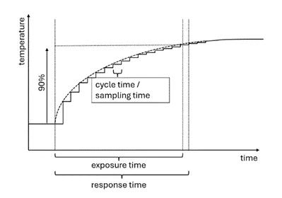 The cycle time represents the total duration required for a sensor to complete one full measurement loop. The sensor captures the thermal or infrared signals from the measurement target, corrects any known errors or calibration factors in the captured signals, and applies algorithms to process the data into a usable format. The processed signals or alarms are then provided as output from the sensor in analog or digital signals.