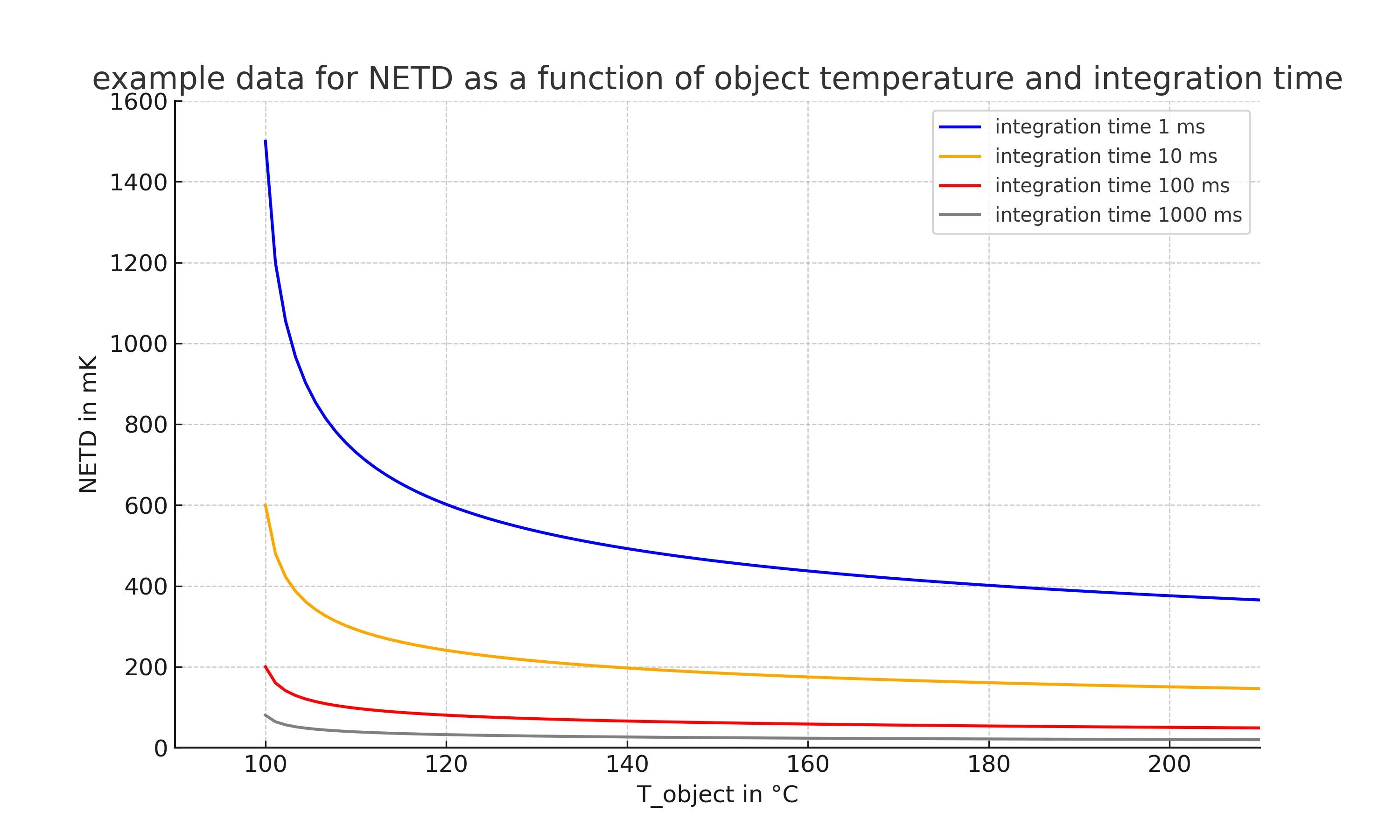 Further, the NETD depends on integration time and may depend on ambient temperature. The noise is highly dependent on the particular signal processing. The signal-to-noise ratio can be improved with a longer integration time but at the expense of the response time of the device.