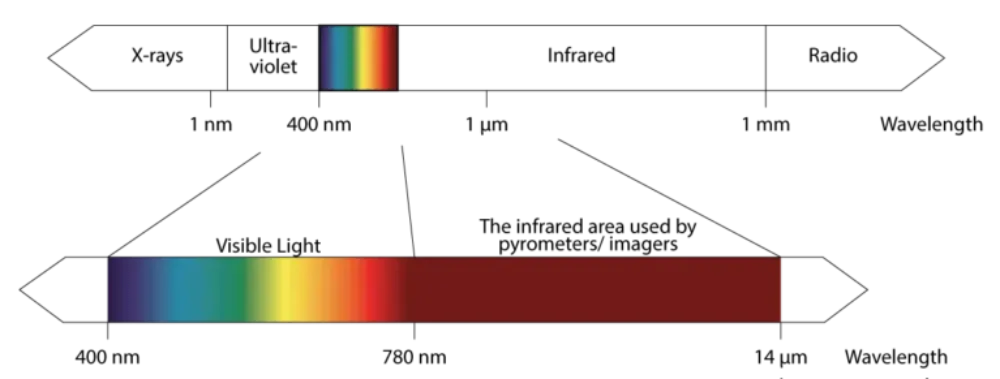 The waveband or spectral range refers to a selected portion of the total electromagnetic spectrum, which spans from high-energy gamma rays to low-energy radio waves. For temperature measurement applications, this range typically includes the near-infrared, mid-infrared, and long-wave infrared bands.