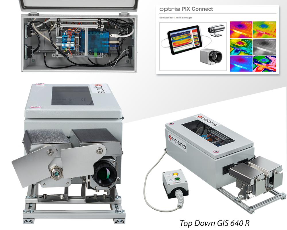 The Top-Down GIS is delivered as a pre-assembled system for easy installation on glass tempering furnaces. This turnkey solution simplifies the implementation process, allowing manufacturers to quickly integrate the system into their existing production lines. The system’s design ensures minimal disruption during installation while providing immediate benefits in terms of temperature measurement accuracy and process control. It consists of several pre-wired components ready for immediate use. The infrared glass system is supplied with 24V and connects to a PC via an Ethernet cable. The system can be used directly with the PIX Connect analysis software and a predefined layout, enabling seamless operation and efficient data analysis from the moment it is installed.
