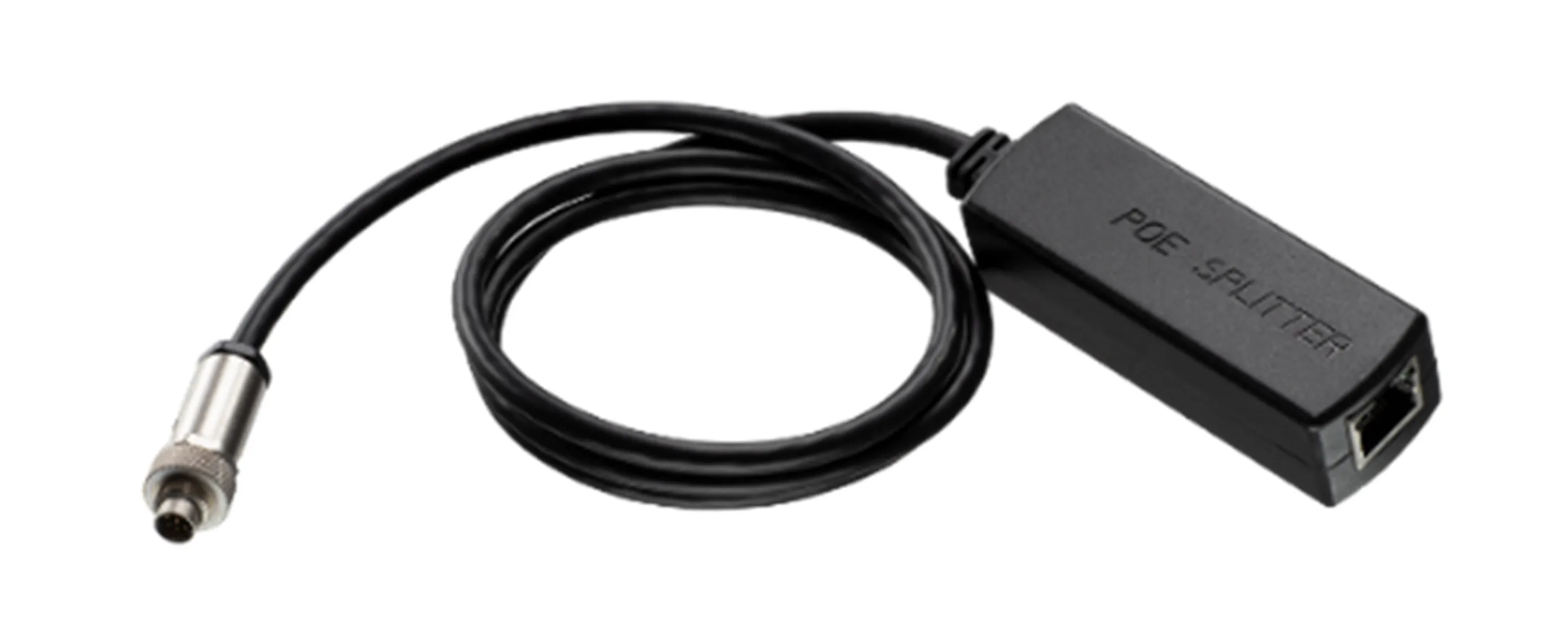 The Ethernet cable is essential for long-distance communication to the infrared camera. It optionally supports Power over Ethernet with an electronics box, which offers simultaneous data and power transmission for Xi series cameras. Ethernet supports high-speed communication and reliable power delivery, reducing the need for separate cables. An Ethernet connection with an Xi infrared camera can bridge up to 20m. Special high-temperature versions up to 250 °C are available.
