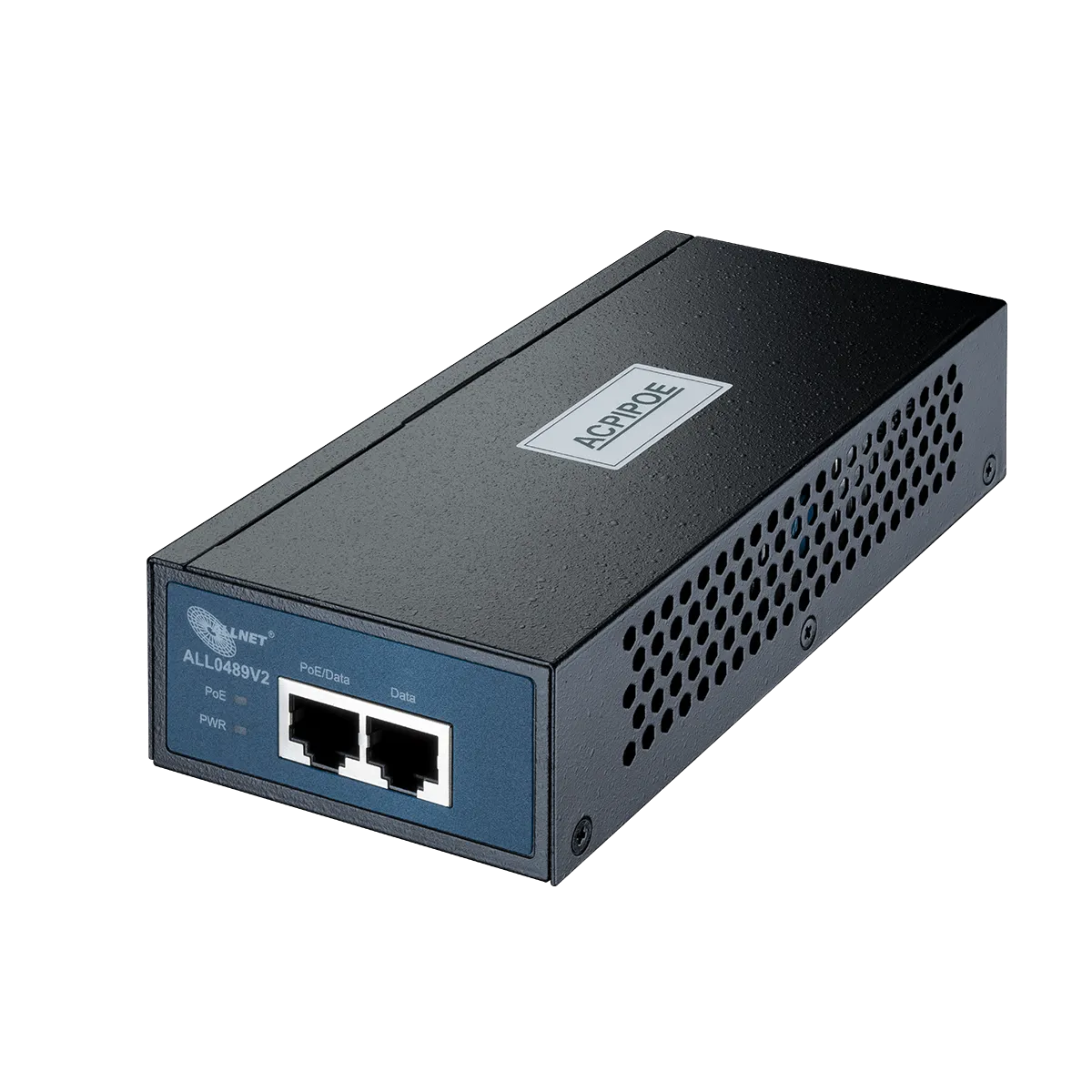 The high-power PoE Injector enables Ethernet-enabled infrared camera installations without power outlets, upgrading non-PoE switches and avoiding new switch costs. It supports IEEE802.3af (15.4W) and IEEE802.3at (30W) standards. With RJ-45 input and output jacks, it connects devices up to 100 meters apart. The compact, robust metal design allows hidden installation, featuring an integrated power supply. Configuration-free setup simplifies adding PoE support.