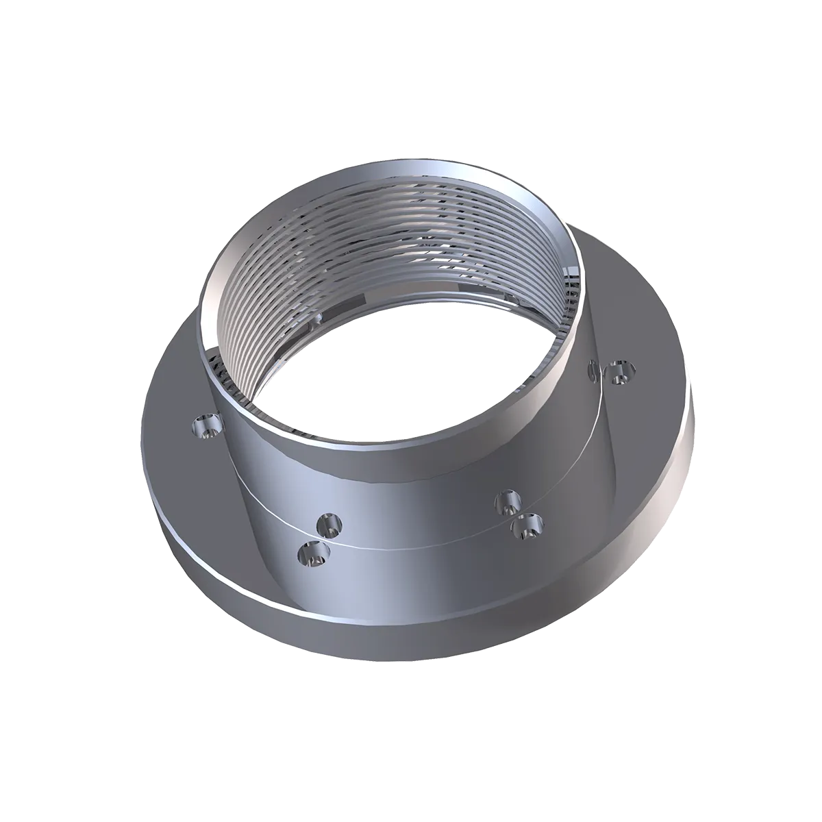 The pipe flange in the Cooling Jacket Advanced is designed for front mounting of the cooling housing. It provides a secure connection for installing onto various surfaces, including pipes, and fits sighting tubes with M48x1.5 thread. This flange ensures the cooling housing is correctly positioned and firmly attached. It includes necessary mounting screws and washers, enhancing the versatility and adaptability of the Cooling Jacket Advanced.