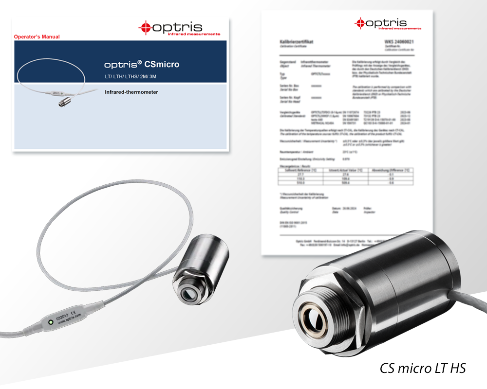 These pyrometers are designed and manufactured in Germany, carefully calibrated to government standards such as PTB or NIST. For large-quantity OEM customers, customization options, such as different cable sizes, are available. As with all Optris products, application engineers are on hand to discuss industrial applications and provide after-sales support.