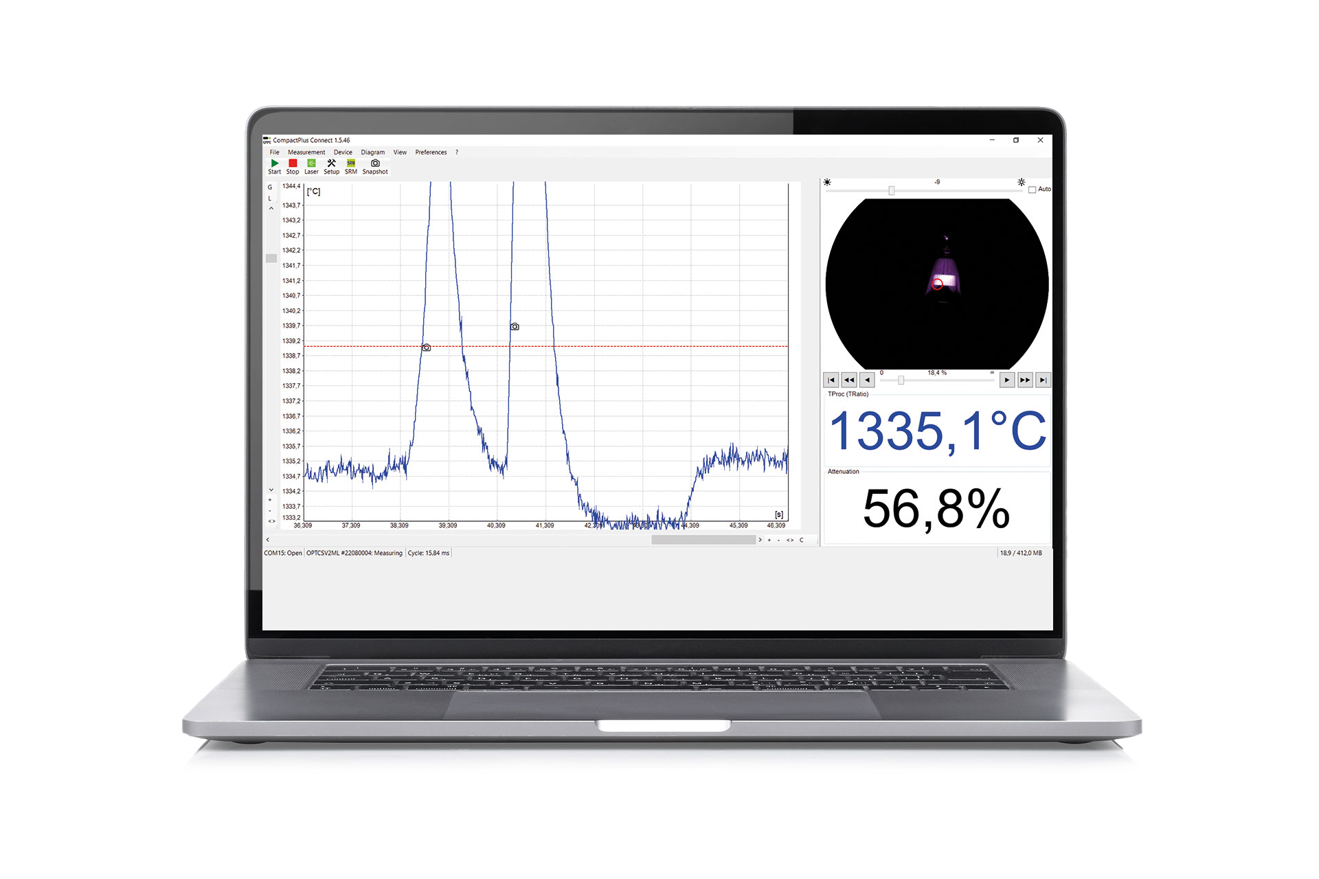 The Optris CompactConnect software improves the functionalities of Optris fixed infrared pyrometers, offering various monitoring, analysis, and control features beyond basic temperature measurement. It includes features like visualizing temperature trends with temperature-time diagrams and documentation. The software enables data logging, automatic process controls, parameterization of the pyrometer via configuration settings, and setting up programmable outputs and inputs. Additionally, it provides advanced signal-processing functionalities.