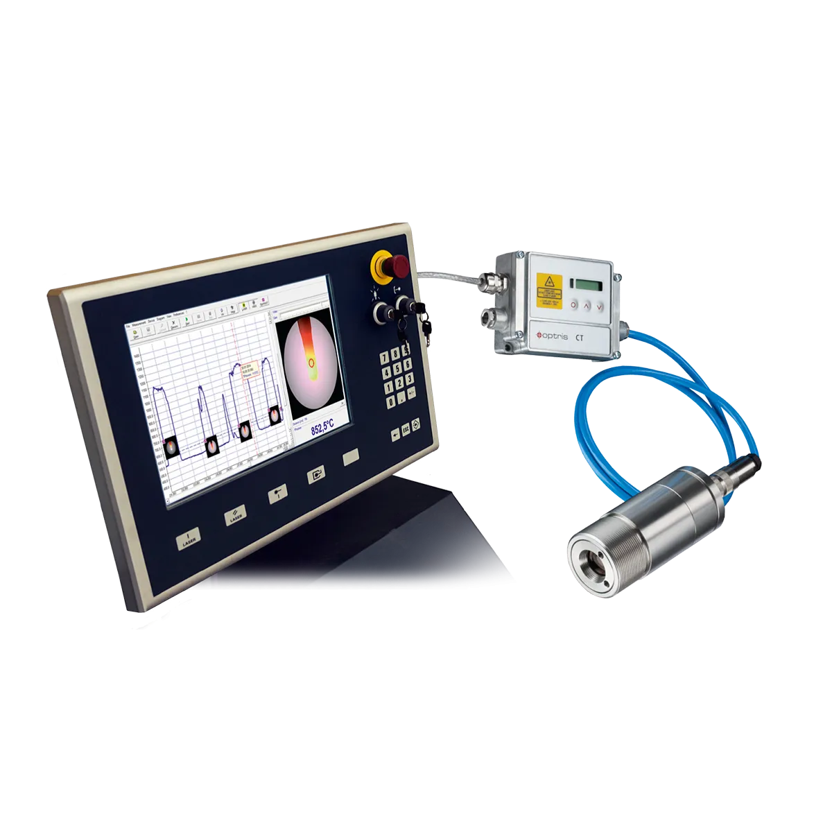 The Optris video pyrometers CTvideo 1M allow parallel use of video and crosshair laser aiming for an optimal measuring field adjustment even in processes with limited access.