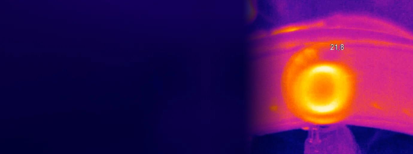 The Xi 400 camera is positioned above the induction sealing machine, where it monitors the heat transfer from the aluminum foil to the plastic bottle cap. The induction machine melts the wax layer between the foil and the cap to create a proper seal. Capturing the surface temperature of the cap immediately after the induction process allows the camera to detect any inconsistencies in sealing, which is crucial for ensuring product safety.