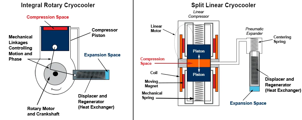 These systems detect radiated heat from objects. Any additional heat within the camera itself can introduce unwanted background noise, which reduces the clarity and accuracy of the thermal images. Cooled infrared cameras minimize this internal thermal noise by using a cryocooler to lower the sensor temperature to cryogenic levels. This cooling mechanism allows the cooled infrared camera to detect even the smallest temperature variations between the target and its background. The cryocooler runs continuously to maintain the low temperature, typically around 77 Kelvin (-196 C or -321 F). This continuous operation is important for achieving the high sensitivity required for precise thermal imaging. The cooler, often filled with volatile gas, needs to be built to extremely close mechanical tolerances. Unfortunately, it wears out over time and eventually requires maintenance or replacement after a couple of thousand hours of operation.
