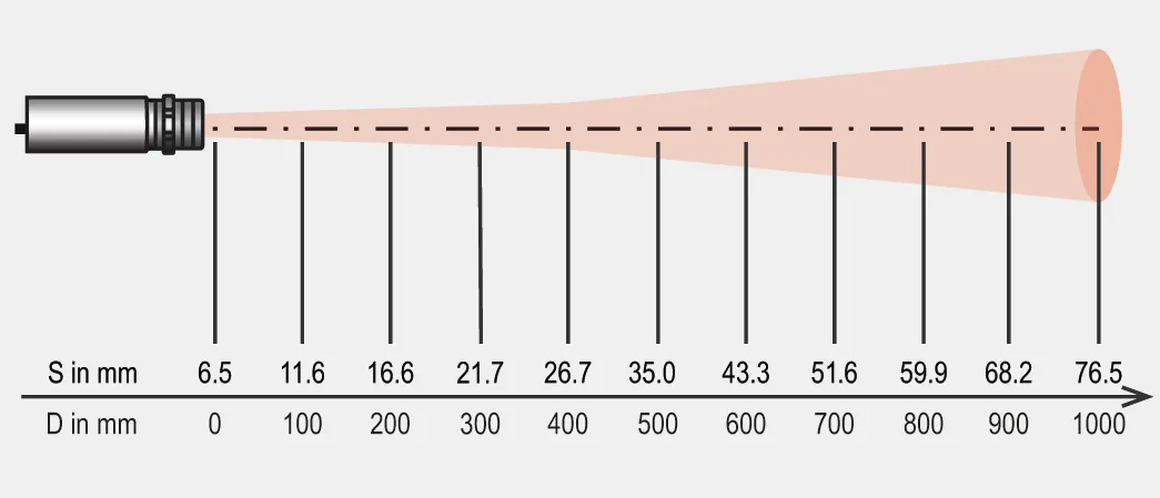 In devices with adjustable focus, a single D:S ratio is applied for the full measurement range. Although the spot size increases with distance, the ratio remains constant. Conversely, fix focus devices, such as compact pyrometers, the D:S ratio is given only for a certain focal distance. Shifting the target out of the focus, the D:S ratio is decreasing, leading to a larger measurement spot and potential temperature deviations.