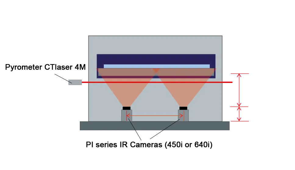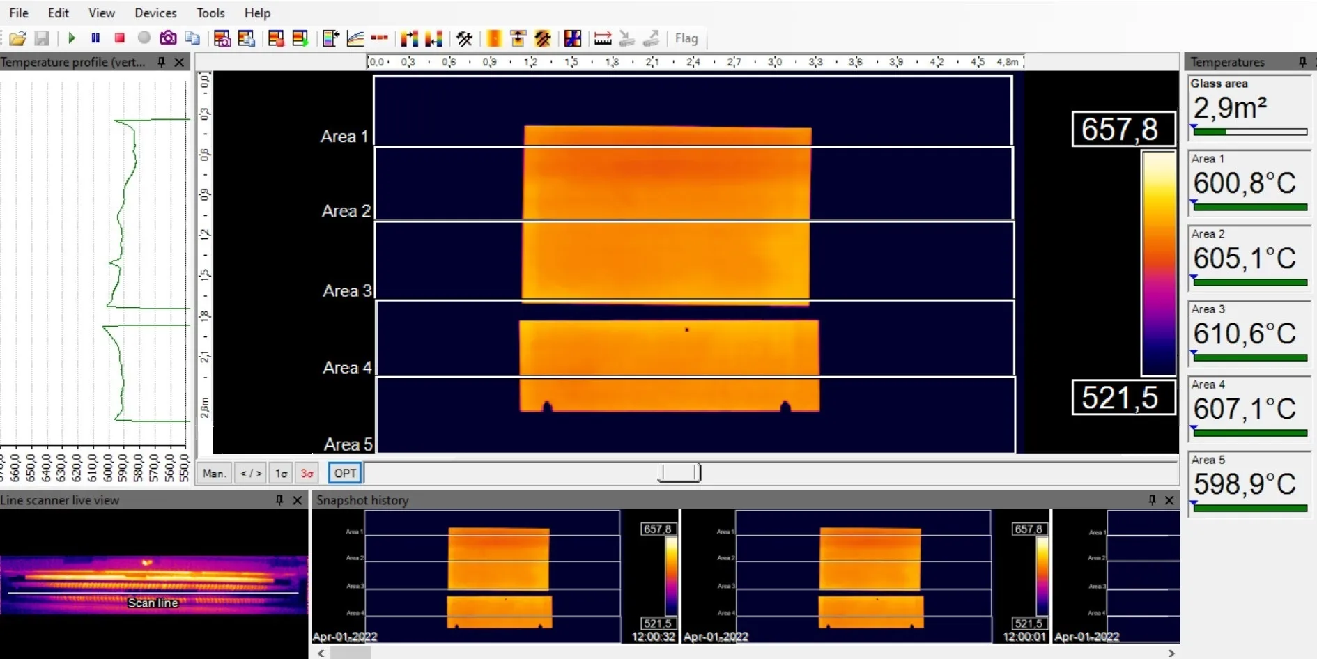 A suitable position for glass measurement is between the furnace and the immediately following annealing furnace. In most cases, there is a small slit there, as the glass is transported on the glass is transported on conveyor belts, allowing a contactless temperature measurement. After leaving the furnace, the glass must be cooled down relatively quickly. The annealing furnace follows the heating furnace at a very short distance.