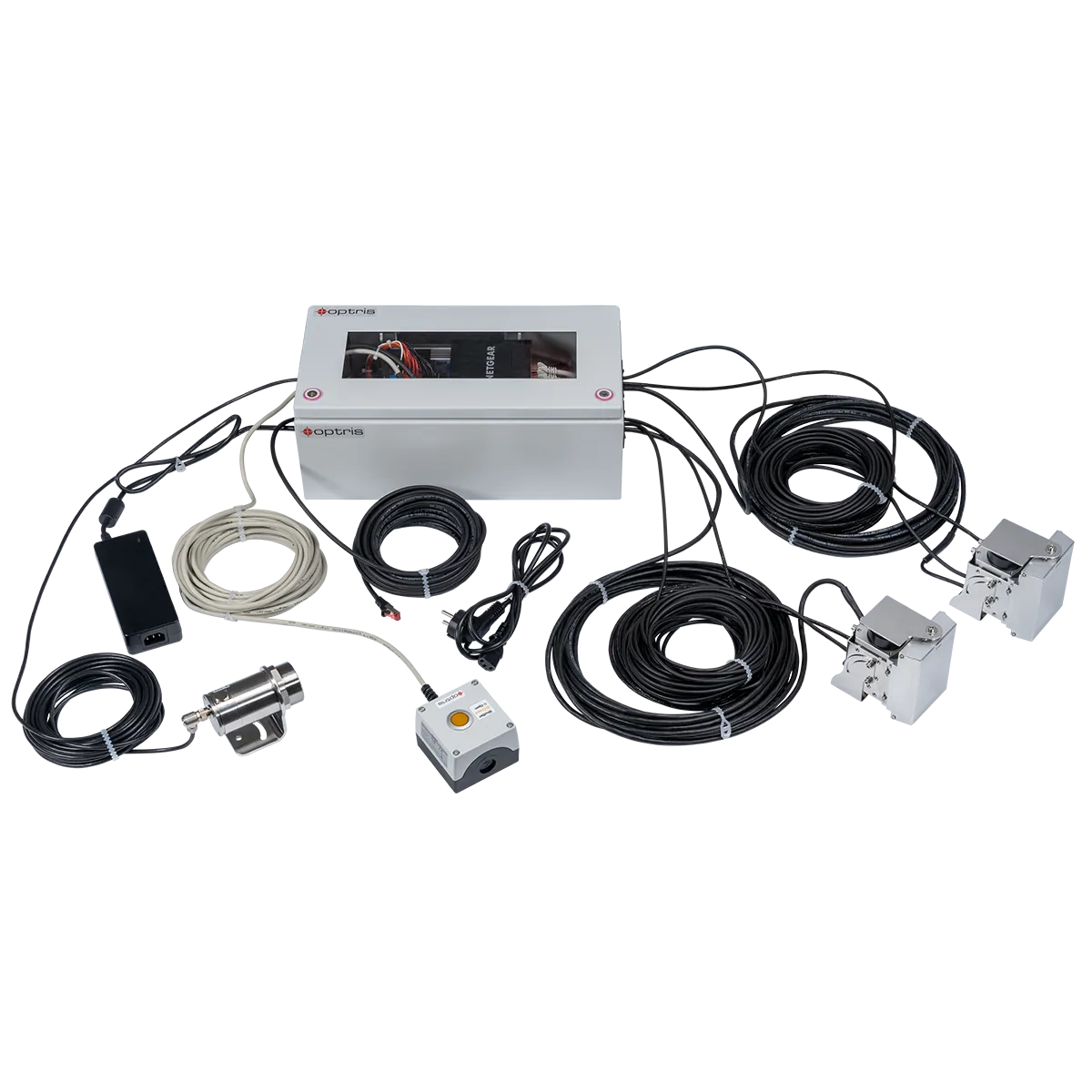 The whole system consists of three main components: two infrared cameras with shutters, an additional pyrometer that detects broken glass approaching the infrared cameras, and a switch cabinet with a complete electronic unit and control unit.