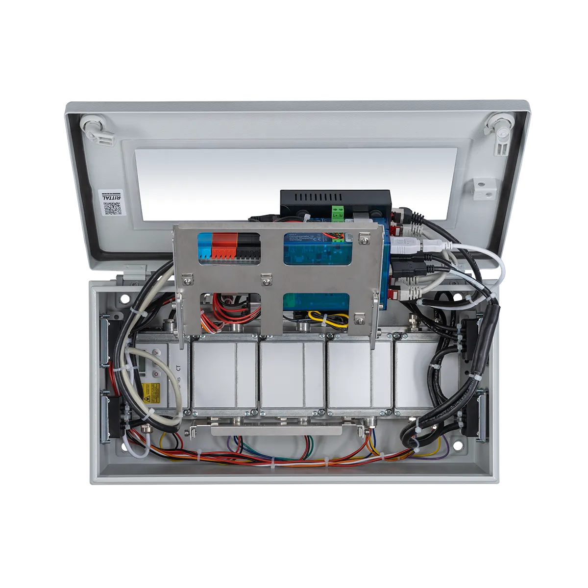 It is recommended to start triggering the line scan of the system with an additional input. Therefore, the cabinet must opened to integrate the furnace’s input signal with the glass inspection system.