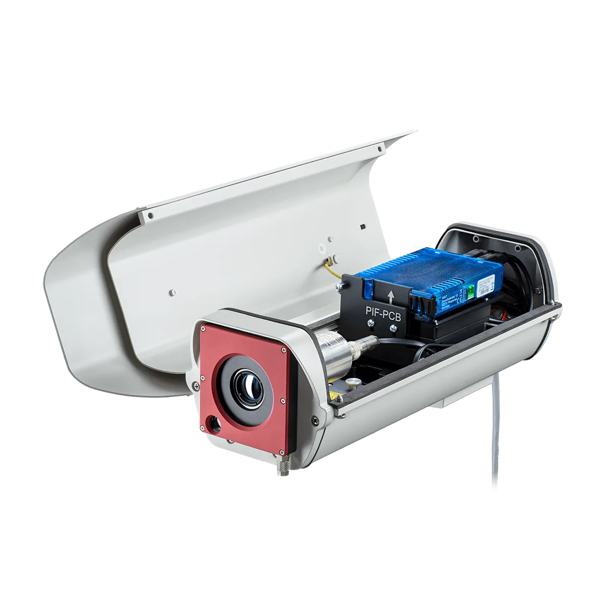 The outdoor protective housing for Optris infrared cameras offers robust protection in harsh environments. It is compatible with all Optris infrared cameras and shields against dirt, dust, and moisture. Features include an integrated heating system, durable aluminum construction, IP66 rating, protective window, and air purge collar. It can house an additional USB server and industrial PIF integration, and it ensures efficient operation and extended lifespan for your cameras.