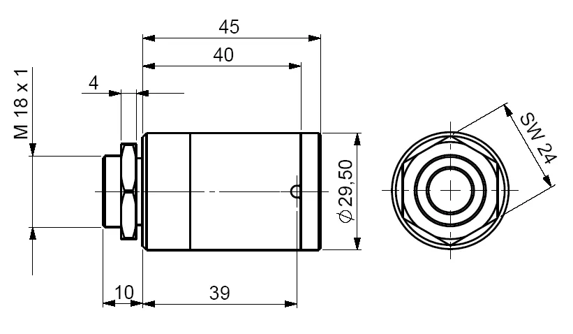 - Size: Ø29.5 mm x 35 mm (1.16 in x 1.38 in), M18x1