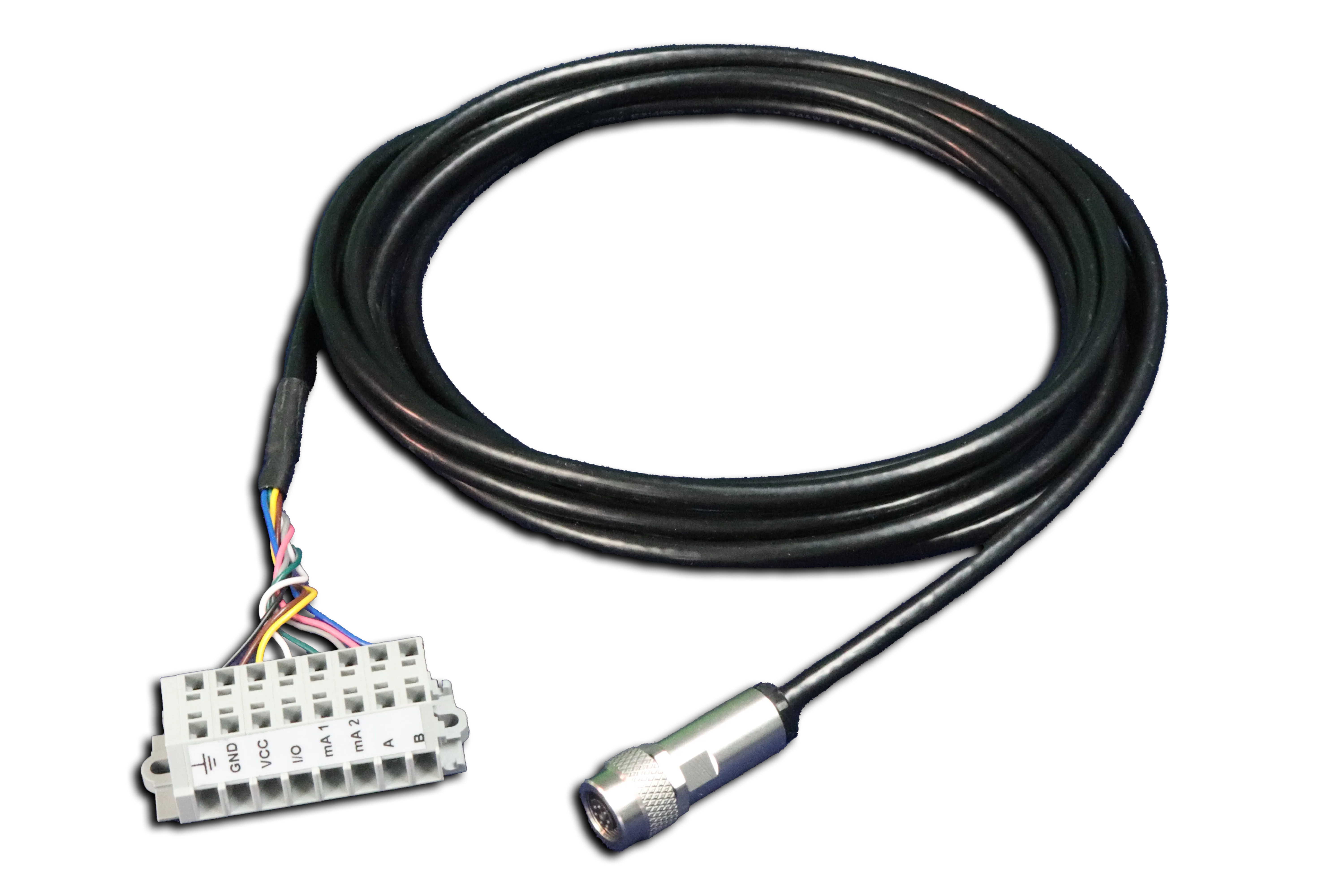 The 7-pin cable, with 7-pin cable socket on one side and open ends on the other side, is designed for industrial analog outputs and inputs, supporting RS485 and Modbus RTU protocols.