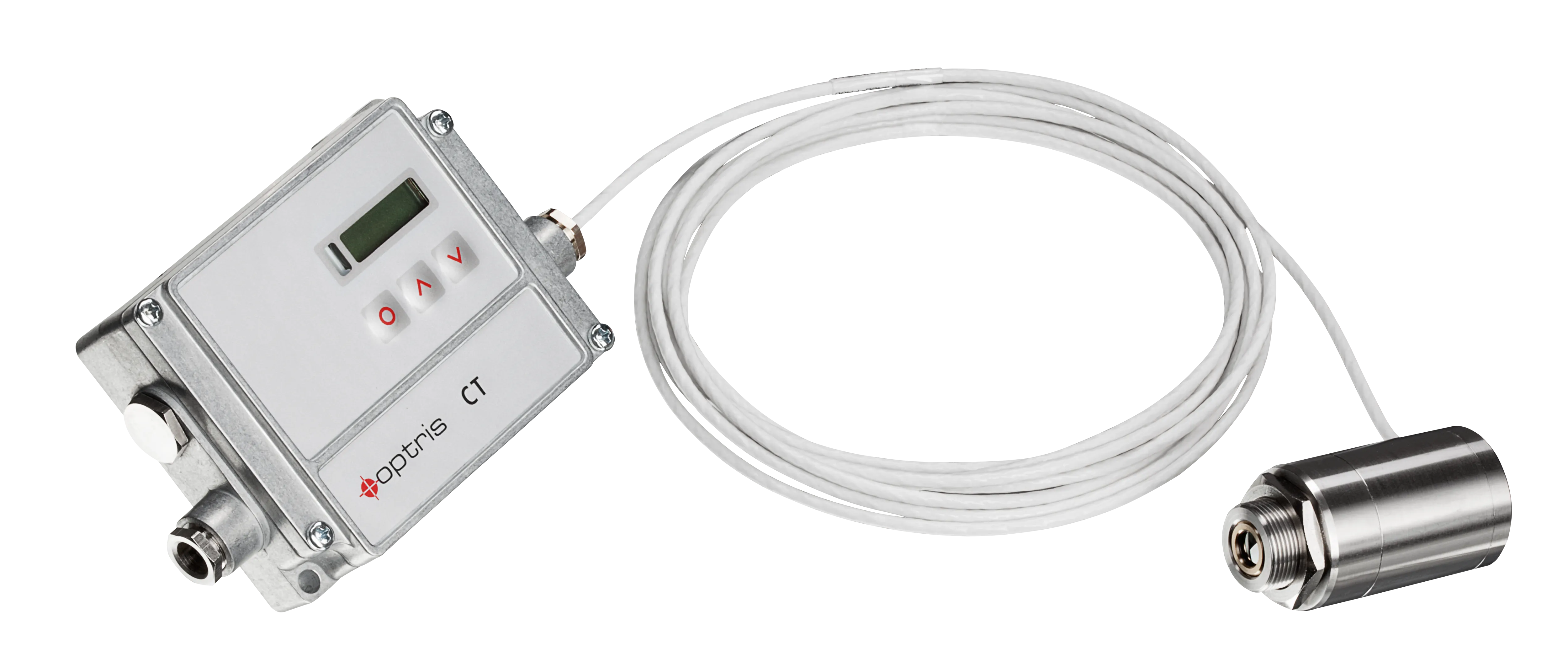 The Optris CT P7 offers a range of features to meet industrial needs. The infrared thermometers separate electronics box includes easily accessible programming buttons and an illuminated LCD, ensuring user-friendly operation.